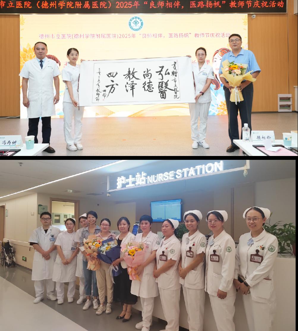 恰逢教师节来临之际,学院负责人、教师代表一行先后前往德州市立医院(德州学院附属医院)和山东大学齐鲁医院德州医院,向临床代教老师送上节日祝福,并与护理部主任、代教老师深入座谈,感谢实习医院长期以来对临床教学工作的支持与配合,并表达了未来持续深化合作、共同优化医学人才培养路径的期待。