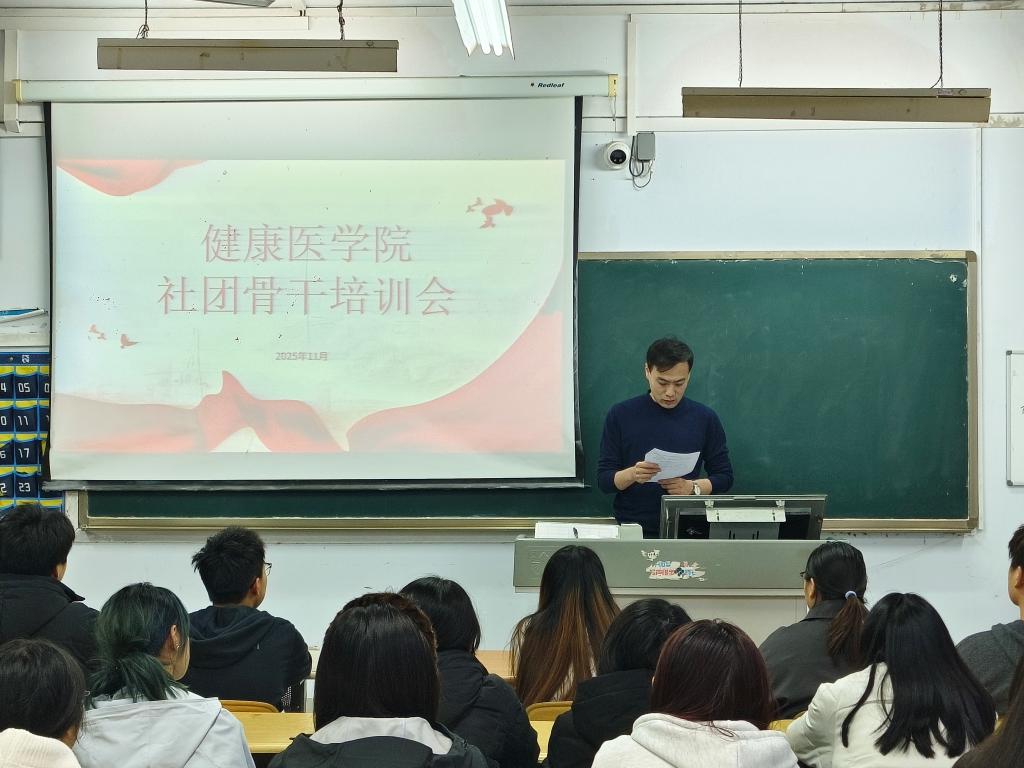 为全面提升学生社团骨干的综合素质,推动社团工作规范、有序发展,11月6日,健康医学院在求实楼208教室组织开展了学生社团骨干培训会。学院团委书记、各学生社团负责人、核心骨干及成员代表参加了培训。