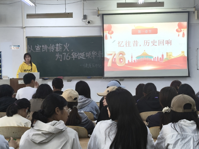 金秋送爽,丹桂飘香。在中华人民共和国成立76周年与中秋佳节交汇之际,健康医学院于9月28日下午在求实楼207教室举办“以宣讲传薪火,为76华诞颂华章”国庆宣讲活动,师生们共上一堂生动的爱国思政课。