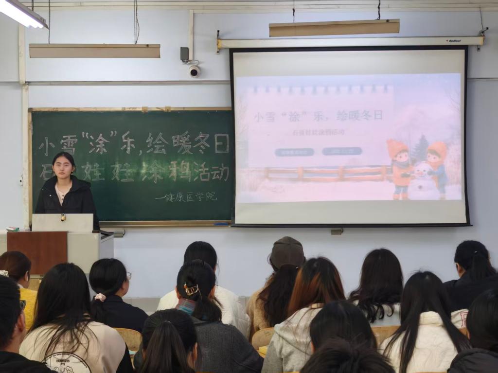 为帮助学生缓解学业压力、丰富课余生活,增进对传统节气文化的了解,健康医学院于11月22日在求实楼205教室举办了以“小雪‘涂’乐,绘暖冬日”为主题的涂鸦活动。
