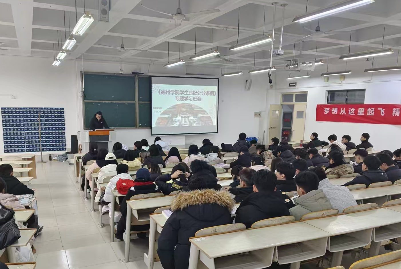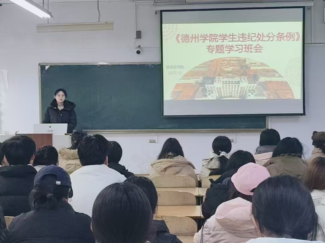 为扎实推进学生管理工作的法治化与规范化,根据学校相关部署,健康医学院于12月12日组织各班级在求实楼召开《德州学院学生违纪处分条例》专题学习班会。