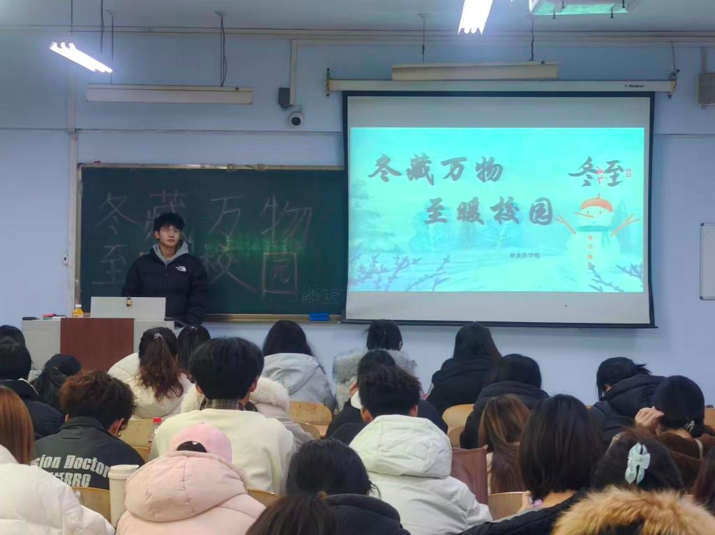 为传承中华优秀传统文化,增进学生对节气文化的认同与热爱,丰富校园文化内涵,营造温暖向上的育人氛围,12月21日,健康医学院在求实楼205教室组织开展“冬藏万物,至暖校园”冬至主题文化活动。