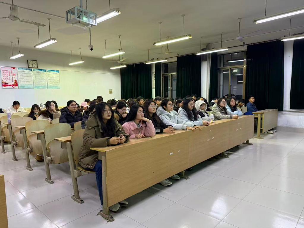 活动伊始,主讲人围绕冬至的起源、习俗与文化内涵进行生动讲解,引导同学们理解“冬至大如年”的传统意义,在感悟民俗魅力中增强文化自信。随后开展的“击鼓传花·冬至版”趣味环节,将现场气氛推向高潮。随着鼓声起伏,同学们传递花束,被选中的同学纷纷分享家乡冬至习俗、讲述温馨故事,或朗诵经典诗词,在互动中由聆听者变为参与者,进一步加深对冬至文化的体验与理解。活动最后,主讲人对本次内容进行总结。通过文化讲解,同学们系统学习了节气知识;借助互动环节,大家沉浸式感受到冬至的独特韵味。整场活动不仅实现了传统文化的有效传递,也让社会主义核心价值观在生动活泼的校园活动中得到自然体现。