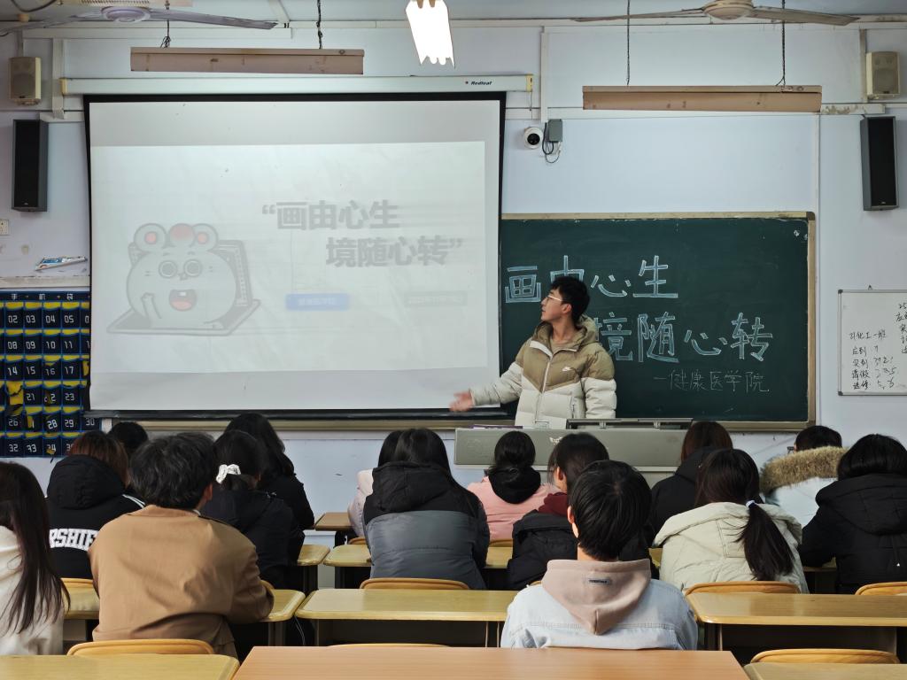 为帮助学生缓解学业与生活压力,培育积极健康心态,11月23日下午,健康医学院在求实楼208教室举办“画由心生 境随心转”心理赋能主题活动。