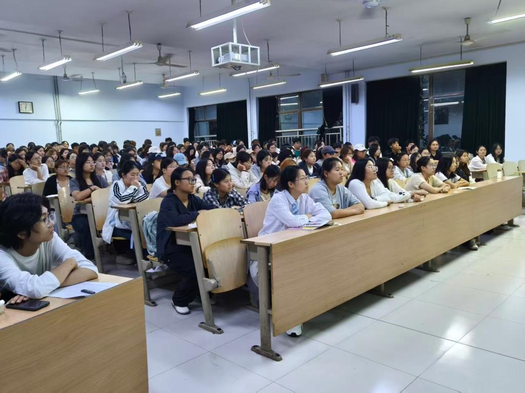 本次讲座由学院负责就业指导工作的辅导员担任主讲。主讲人首先以“健康行业人才需求趋势”为切入点,结合近年来医疗健康领域的发展数据,系统剖析了临床护理、公共卫生、健康管理等热门方向的岗位需求与相应能力要求。讲座强调,“职业规划不是大四的‘临时任务’,而是贯穿大学四年的‘长期工程’”,并建议新生从大一起就重视专业知识积累与实践能力锻炼。随后,主讲人围绕“自我认知—目标确立—路径规划”三大模块展开讲解,引导同学们通过兴趣测评与技能盘点发掘自身优势,并全面介绍了考研深造、公立医院应聘、基层医疗服务等不同发展路径的准备工作,特别提示了执业资格考试与实习经历等关键环节的重要性。在互动环节,主讲人针对新生普遍关注的“如何平衡专业学习与社会实践”“跨专业就业的可能性”等问题进行了细致解答,现场交流氛围热烈。