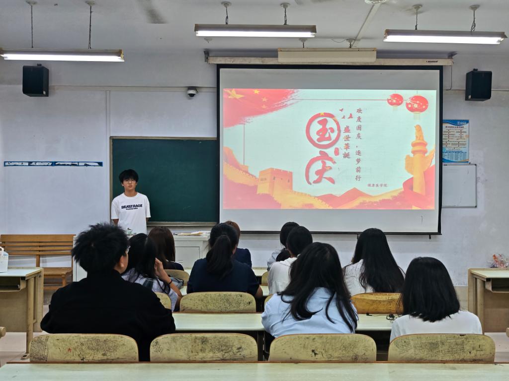 为庆祝中华人民共和国成立76周年暨中国人民抗日战争暨世界反法西斯战争胜利80周年,深情回顾祖国奋斗历程,凝聚奋进力量,健康医学院于9月28日下午在体育楼403教室隆重举办“欢度国庆,逐梦前行”主题教育活动。
