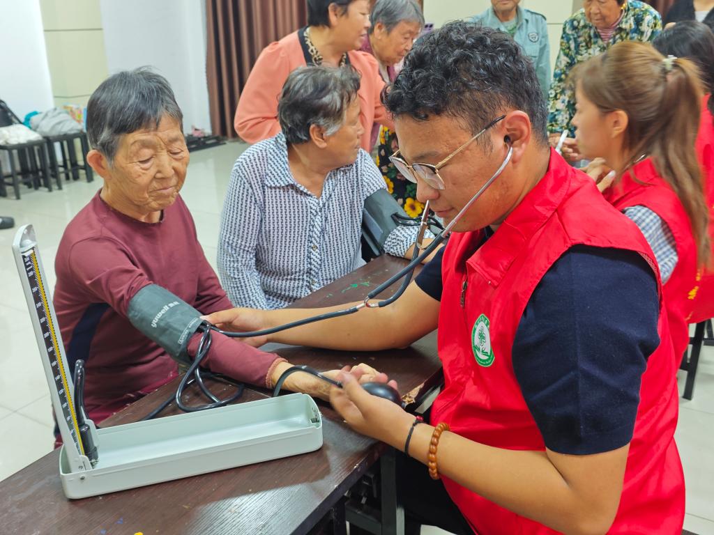 活动以国庆主题宣讲开场,以新颖、多元化的方式积极宣传党的理论知识,提升理论宣传的吸引力、渗透力、影响力,推动党的理论深入人心。通过讲述新中国发展成就激发老年群体爱国情感。随后,在健康服务环节,志愿者为老人免费测量血压、血糖,耐心记录数据,并针对“血压调理”、“秋季防病”等常见问题提供专业指导,逐一细致解答,用专业知识为老人的健康保驾护航。活动将文化宣讲与健康服务相结合,既丰富了老人精神生活,又传递了健康理念,是学院践行社会责任的具体实践。最后,志愿者带来精彩文艺表演,现场气氛热烈。