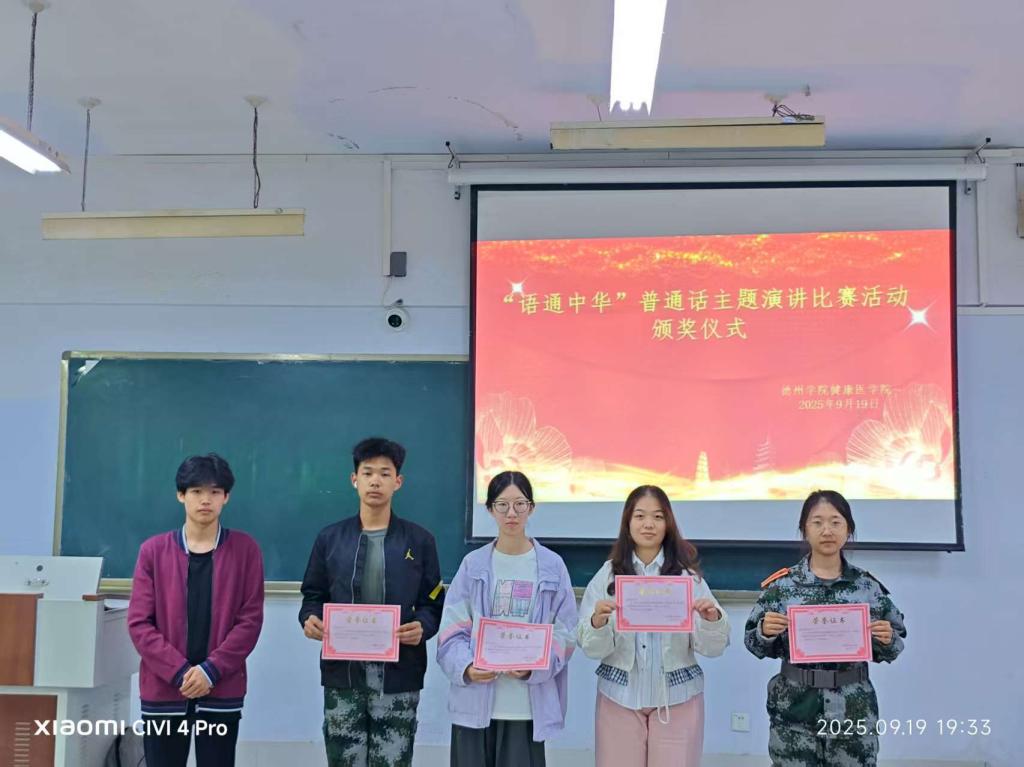 9月19日,学院举办“语通中华·同心共筑”普通话演讲比赛。参赛选手围绕普通话在促进各民族交往交流交融、打破地域隔阂、增进情感认同等方面的重要作用展开演讲,生动诠释了“中华民族一家亲”的深刻内涵。比赛反响热烈,选手准备充分、表达流畅、情感真挚,展现出良好的语言素养与精神风貌。经过线上评选,共评出一等奖1名、二等奖2名、三等奖3名,颁奖仪式于求实楼教室举行。