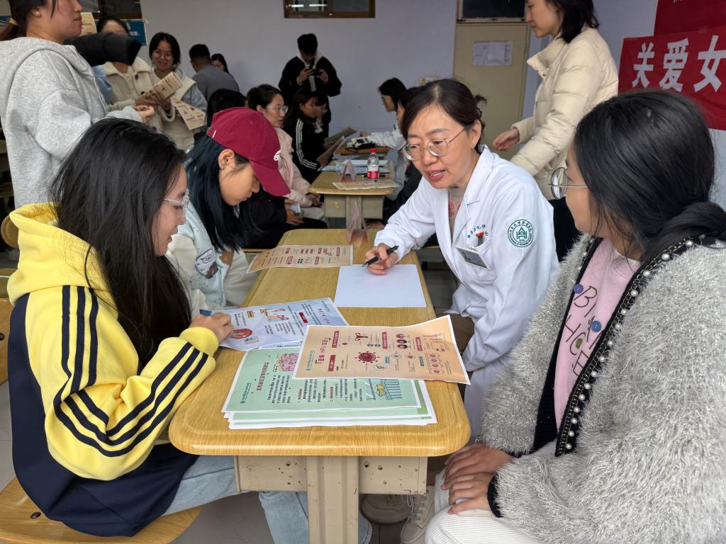 次活动围绕“健康守护+科学防艾”两大主题,设置了主题宣讲与健康义诊两个环节。在讲座中,山东大学齐鲁医院德州医院主任王晶以生动的科普形式,结合真实案例与权威数据,从艾滋病的致病机制、传播途径等方面切入,系统阐述了其对个人健康、家庭幸福及社会发展的潜在危害,重点讲解了女性群体应掌握的科学防艾技巧与自我保护方法,并积极引导师生正确认识艾滋病,消除歧视与偏见,以包容心态对待感染者。在随后开展的健康义诊环节,山东大学齐鲁医院德州医院的医护团队现场坐诊,为师生提供一对一的健康咨询与问诊服务,针对常见疾病与健康隐患给予耐心解答和专业建议,增强了师生的健康管理能力。