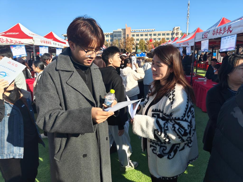 现场气氛热烈,同学们手持精心准备的简历,穿梭于各展位之间,积极与招聘人员沟通,围绕企业发展、岗位要求、薪资待遇等内容进行深入咨询,并结合自身专业背景与职业规划精准投递简历。不少同学表示,本次双选会岗位资源丰富、层次分明,有助于更清晰地认知未来职业发展方向,也为个人职业规划提供了重要参考。此次活动不仅帮助学生进一步明确职业定位,也为用人单位高效招揽人才搭建了良好平台,是推动人才供需精准对接的生动实践。