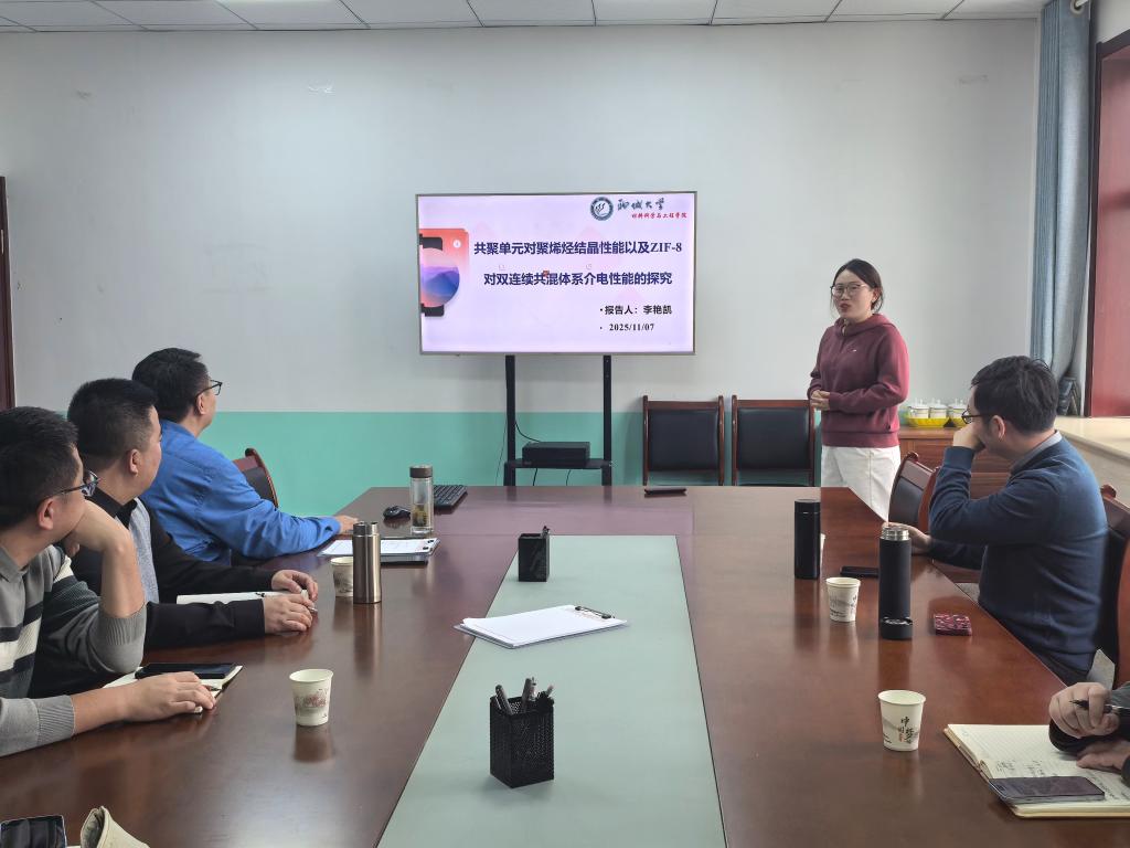 会上,两位专家围绕各自研究领域展开精彩分享。两位专家深厚的学术积淀与丰富的实践经验赢得了现场师生的热烈反响。于振川教授作为山东省泰山学者青年专家,主持国家自然科学基金等8项课题,在Adv.Mater.等顶级期刊发表多篇高水平论文;李艳凯博士作为山东省中小型企业志愿服务专家、意大利访问学者,长期深耕聚烯烃及其纳米复合材料领域,主持多项省级项目,发表SCI论文十余篇,他们的分享既涵盖前沿学术动态,又贴合青年教师科研发展实际需求。