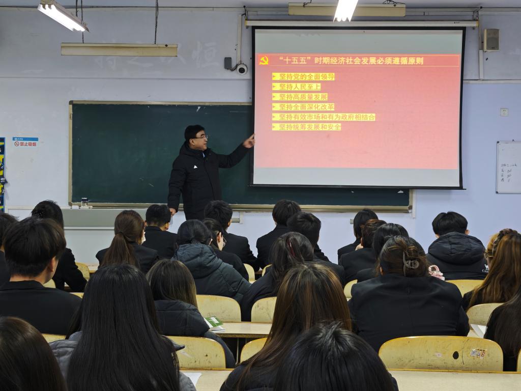 随后,党委书记深入阐释“十五五”时期是基本实现社会主义现代化的重要阶段。他结合当前复杂多变的国内外形势,引导学员们清醒认识新时代赋予的宝贵机遇与严峻挑战,鼓励大家树立长远发展眼光,勇立时代潮头。同时,围绕“十五五”发展的总体思路、核心原则、主要目标及战略任务进行解读,帮助学员们明晰国家未来发展方向,思考如何将个人成长规划与专业发展路径同国家发展大局紧密契合。