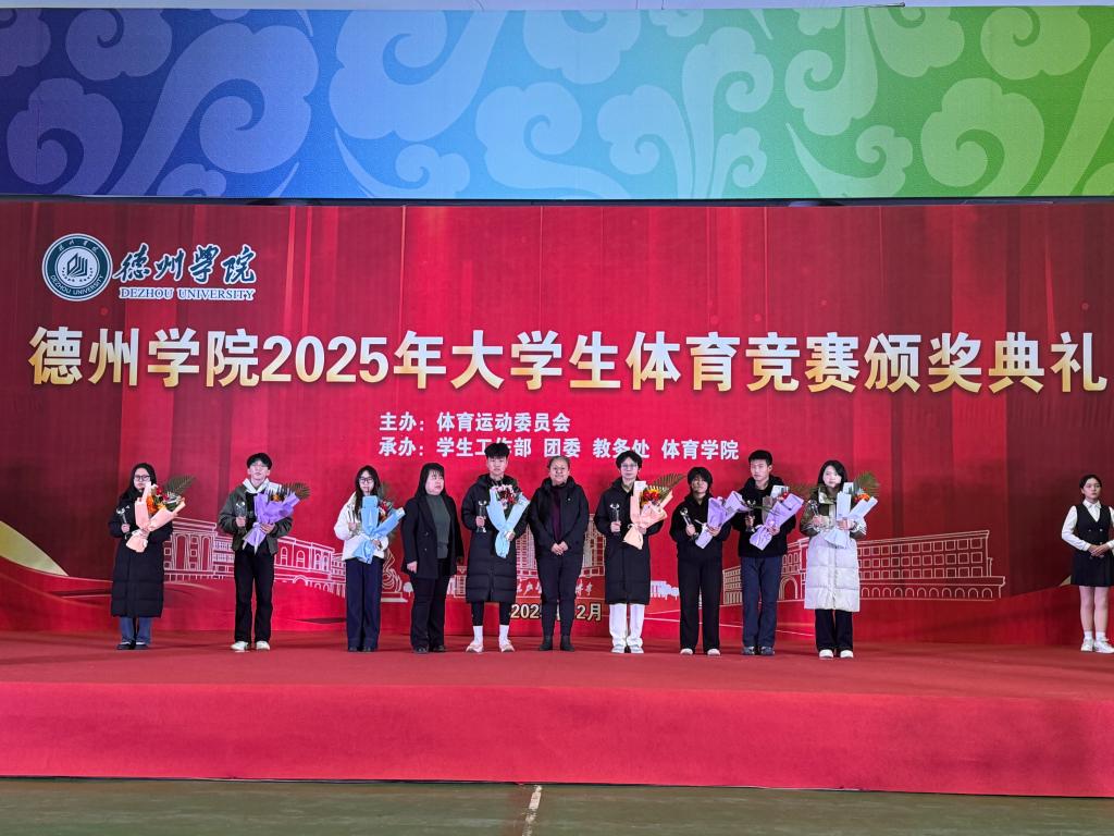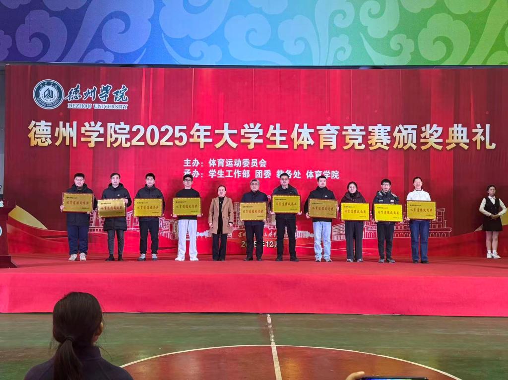 为弘扬体育精神,凝聚团队力量,展现当代大学生奋发向上的青春风采,12月9日下午,德州学院大学生体育竞赛颁奖典礼在学校体育馆隆重举行。健康医学院党委副书记、团委书记及获奖学生代表共同出席,见证学院在2025年系列赛事中斩获多项荣誉的精彩时刻。
