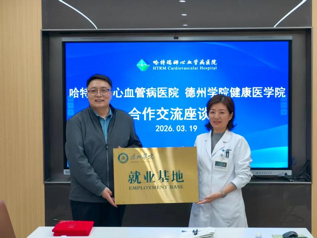 会议期间,双方举行了隆重的签约与揭牌仪式,正式签署就业基地共建协议,并为“德州学院就业基地”揭牌。此次就业基地的建立,标志着双方合作迈入实质性阶段,为健康医学院学子搭建起稳定的实习就业平台,同时也为哈特瑞姆心血管病医院吸纳优质医疗专业人才、充实人才队伍奠定了基础。会后,学院一行参观了医院重点科室及医疗设施,深入了解临床实践环境。
