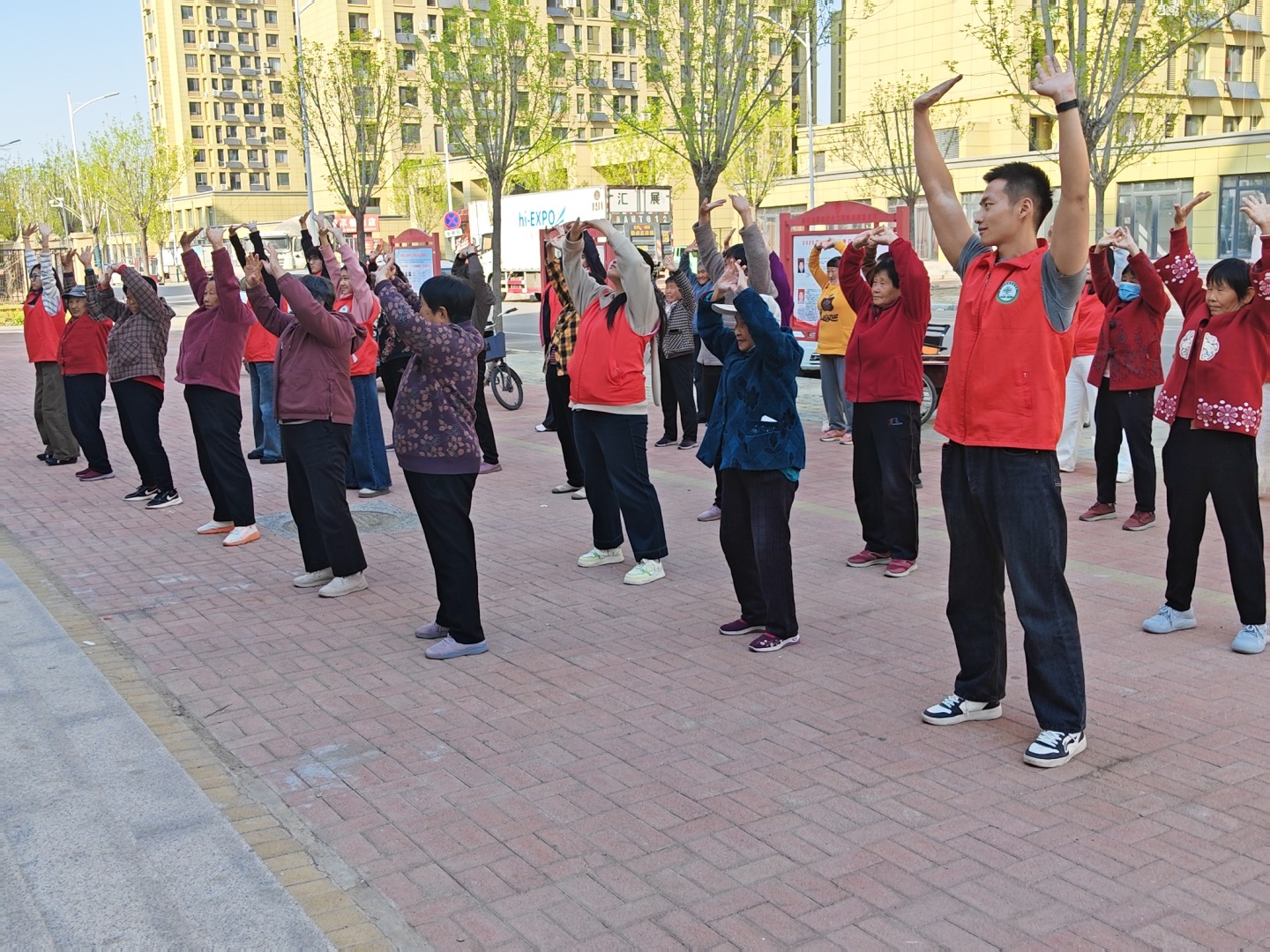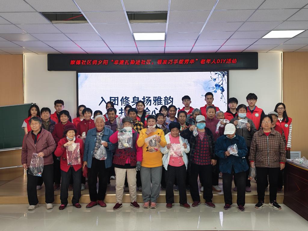 在崇德社区,志愿者们充分发挥专业与文化素养,将非遗传承与健康理念有机融合。他们首先细致讲解了八段锦的养生原理,帮助居民在了解传统技艺的同时,掌握实用的养生方法。随后,志愿者们耐心示范、手把手教学,引导居民一招一式练习八段锦,在舒展筋骨、调节呼吸中收获身心的愉悦与康健。接着,大家一同体验扎染制作,从折布、捆扎到染色,居民们在动手实践中感受传统手工艺的精妙,于动静结合中体悟中华优秀传统文化的深厚底蕴。整个活动充分彰显了志愿者在文化传播与健康教育中的责任担当。