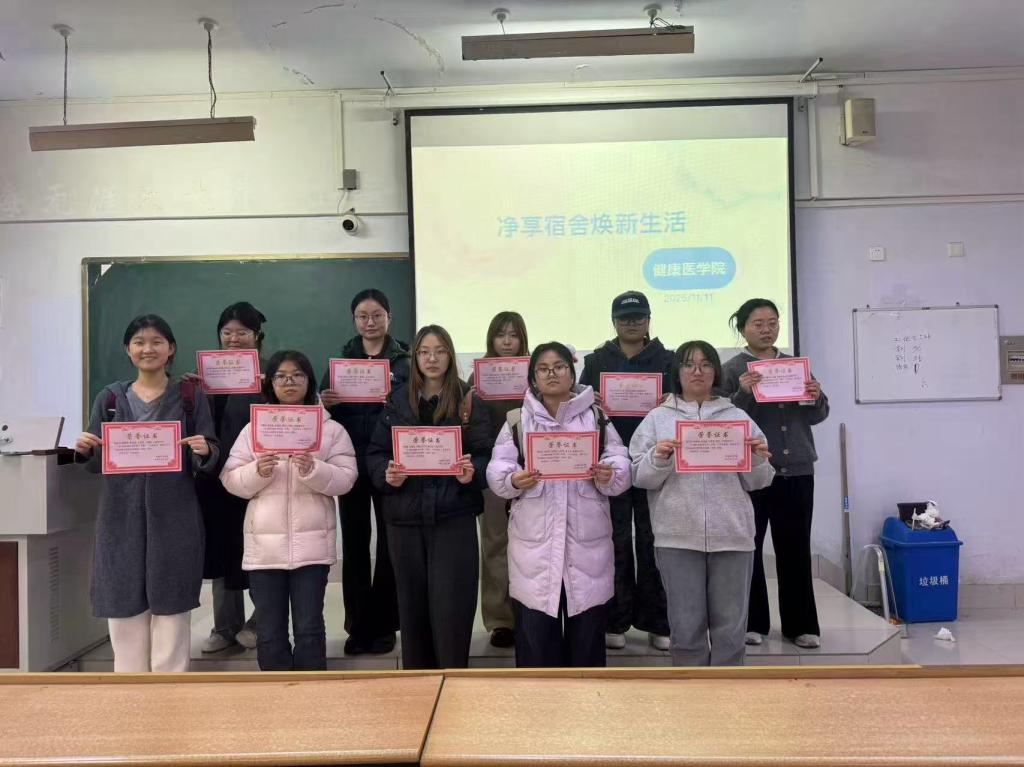 为进一步增强学生的卫生意识与责任观念,共同营造整洁舒适、文明有序的宿舍生活环境,11月11日,健康医学院组织开展“净享宿舍,焕新生活”宿舍卫生评选活动。全院学生积极响应、热情参与,以实际行动共建文明宿舍空间,展现校园“小家”的清新风貌。上午九点,负责宿舍管理工作的辅导员带队,学生会生活权益部成员秉持公平公正原则,依据细化明确的评分细则,对全院宿舍开展实地走访,围绕地面清洁、物品摆放、床铺整理、门窗....