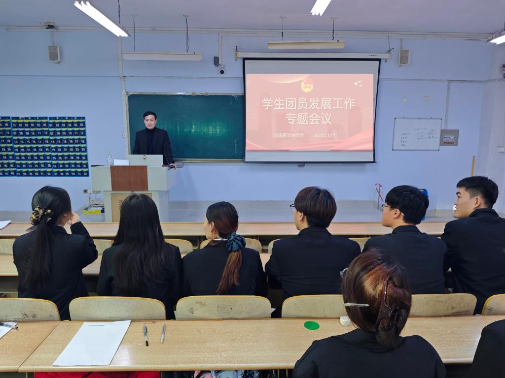 为严格规范团员发展程序,加强团员队伍建设,夯实团组织在青年学生中的引领作用,健康医学院团委于12月1日在求实楼203教室组织召开学生团员发展工作专题会议。会上,团委书记结合最新团务工作要求,系统解读了团员发展相关政策文件,重点阐述了入团的政治标准和价值导向,引导学生树立“入团先入心”的思想认知,深刻理解团员身份所蕴含的政治属性与精神内涵。会议详细介绍了入团申请受理、团课学习、政治素质考察、公示备案等....